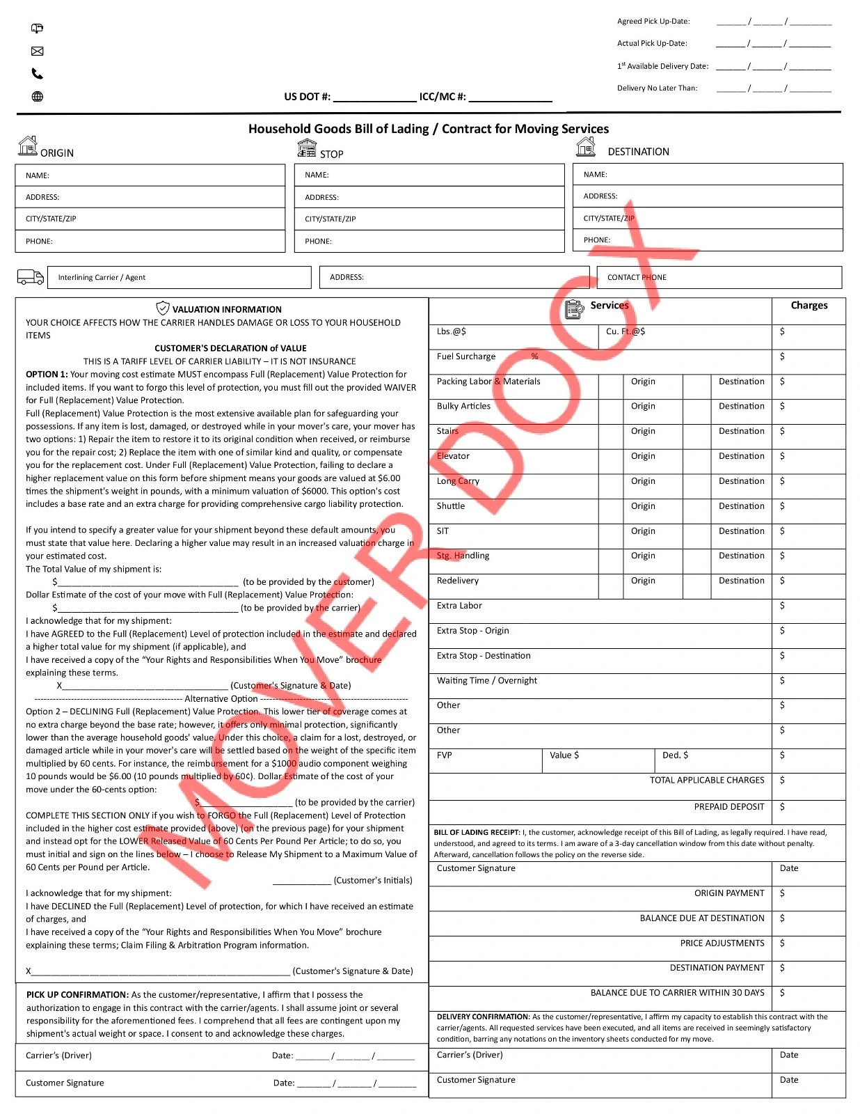 FMCSA-compliant moving contract protecting movers & customers.